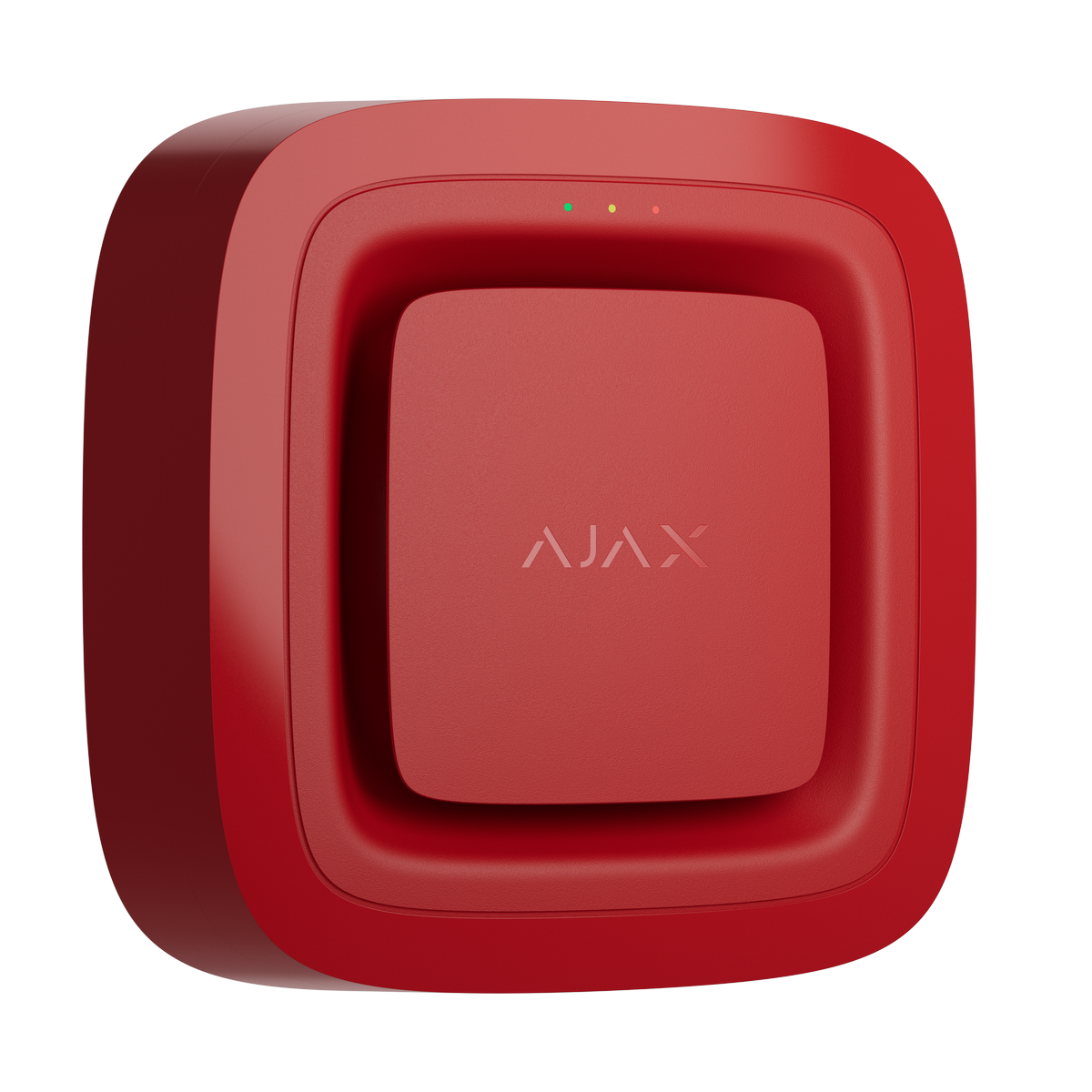 Ajax EN54 FireProtect (Sounder) Jeweller je bezdrátový požární hlásič s výkonnou sirénou, určený pro komerční a veřejné budovy. Nabízí certifikaci EN 54, dosah až 1 700 m, až 5 let provozu na baterie a jednoduchou montáž pomocí SmartBracket. Umožňuje vzdálenou správu, testování a upozornění prostřednictvím aplikace Ajax. Barva červená.