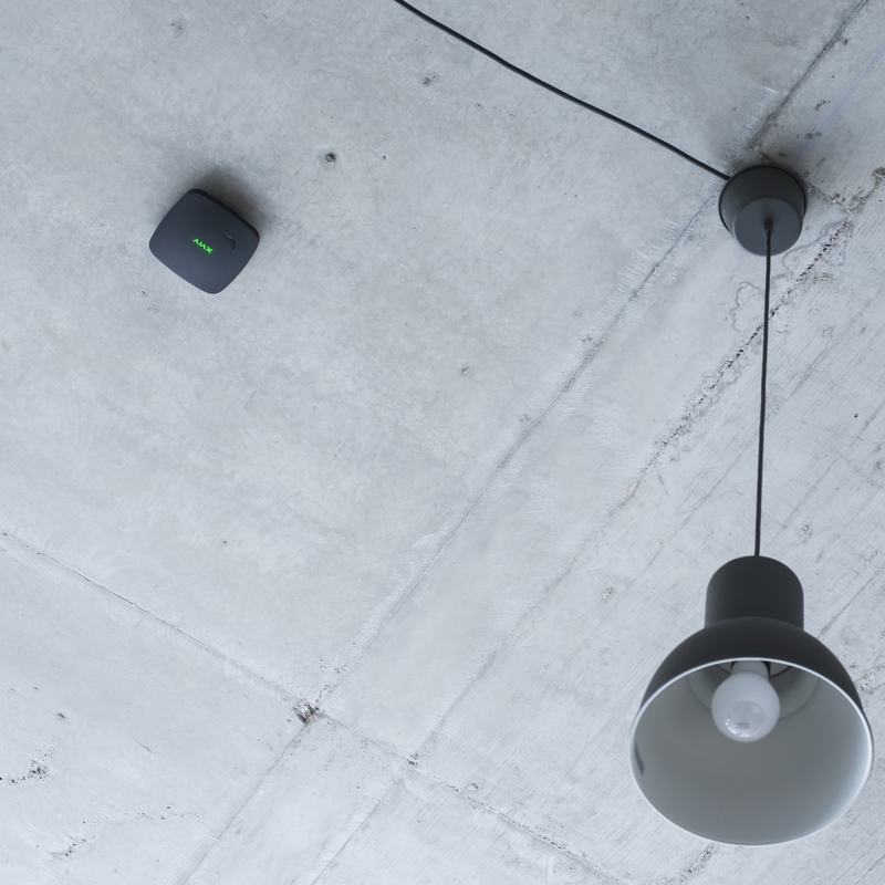 Bezdrátová technologie Jeweller umožňuje komunikaci s Ajax Hubem až na vzdálenost 1 300 m v otevřeném prostoru nebo přes několik podlaží výškové budovy.