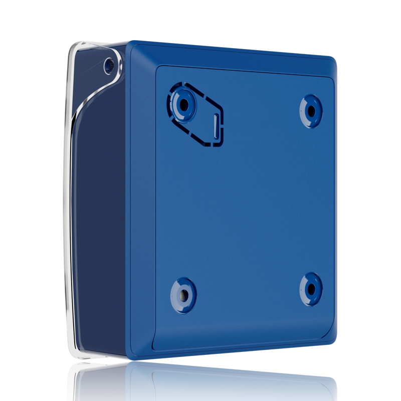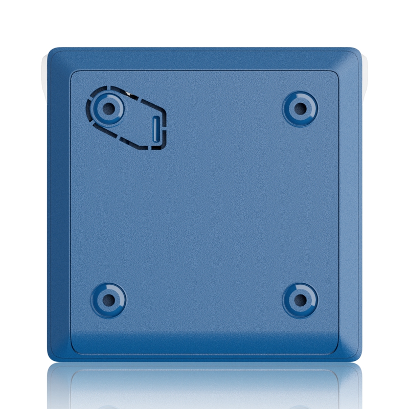 Bezdrátové nástěnné tlačítko pro aktivaci požárního poplachu a automatizačních scénářů. Modrá barva.
