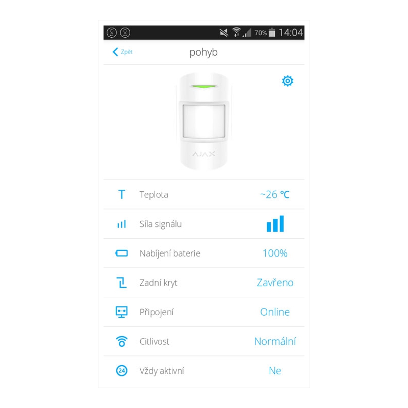 Detekční zóny a kvalitu připojení je možné vzdáleně otestovat prostřednictvím mobilní aplikace.