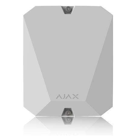 MultiTransmitter je integrační modul s 18 drátovými vstupy pro připojení detektorů třetích stran do systému Ajax. Zařízení je napájeno ze sítě 100–240 V AC a je možné jej zálohovat 12 V akumuláto