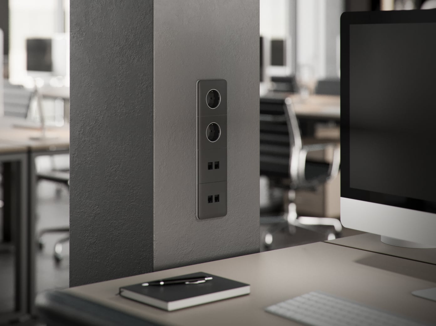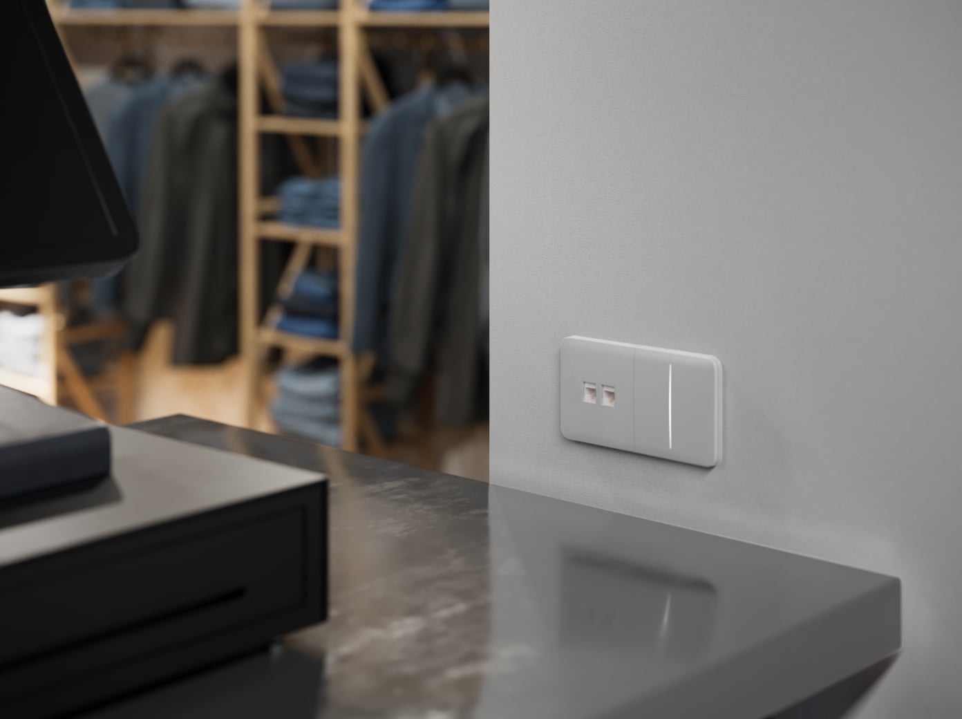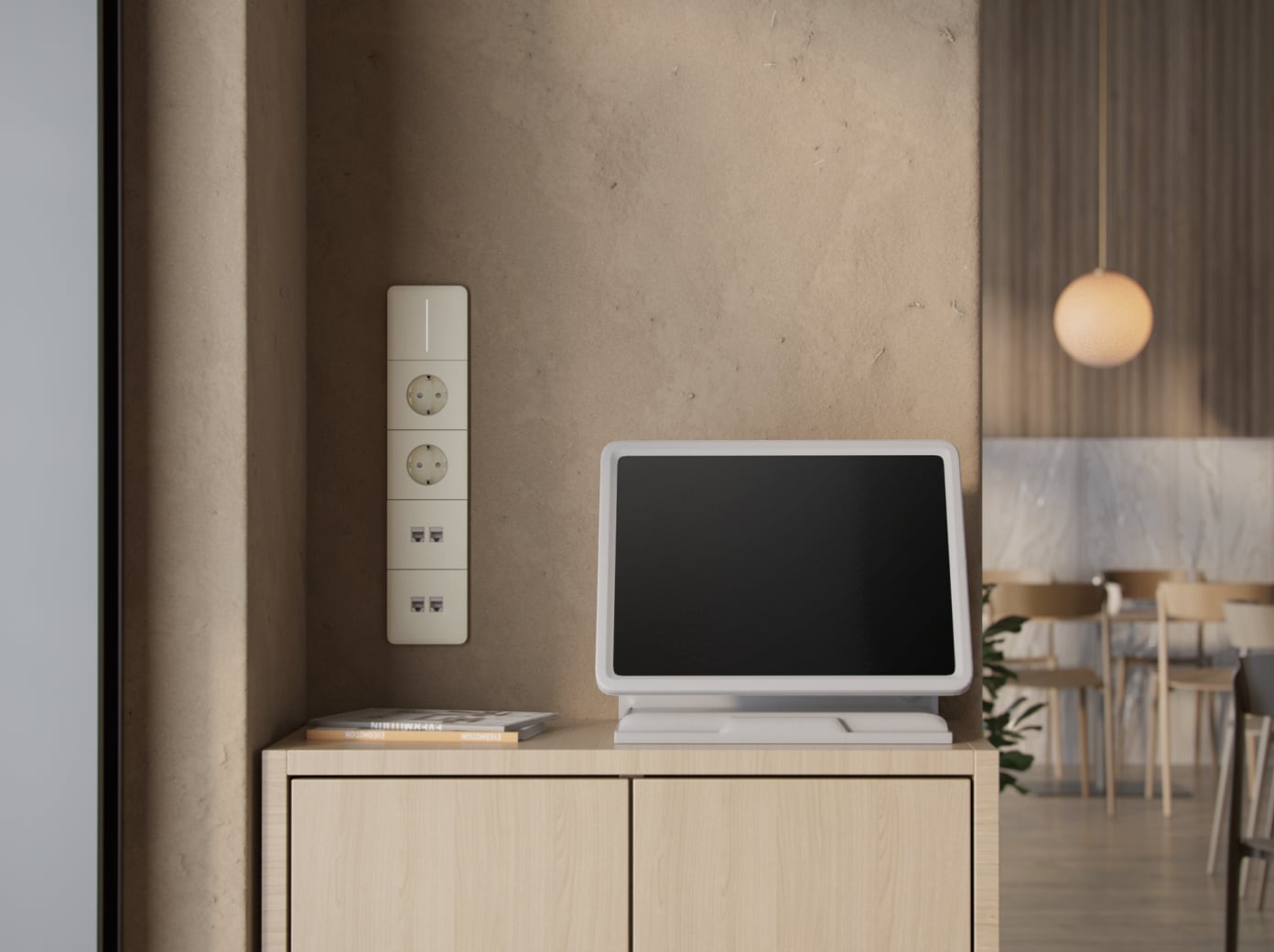 Tenký profil, čisté linie a sjednocená barevná paleta – Outlet (LAN) zapadne do útulného domova stejně dobře jako do moderní kanceláře nebo restaurace.
