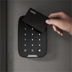 Bezdrátová vnitřní dotyková klávesnice pro ovládání zabezpečovacího systému Ajax pomocí šifrovaných bezkontaktních karet a tagů. Barva černá.