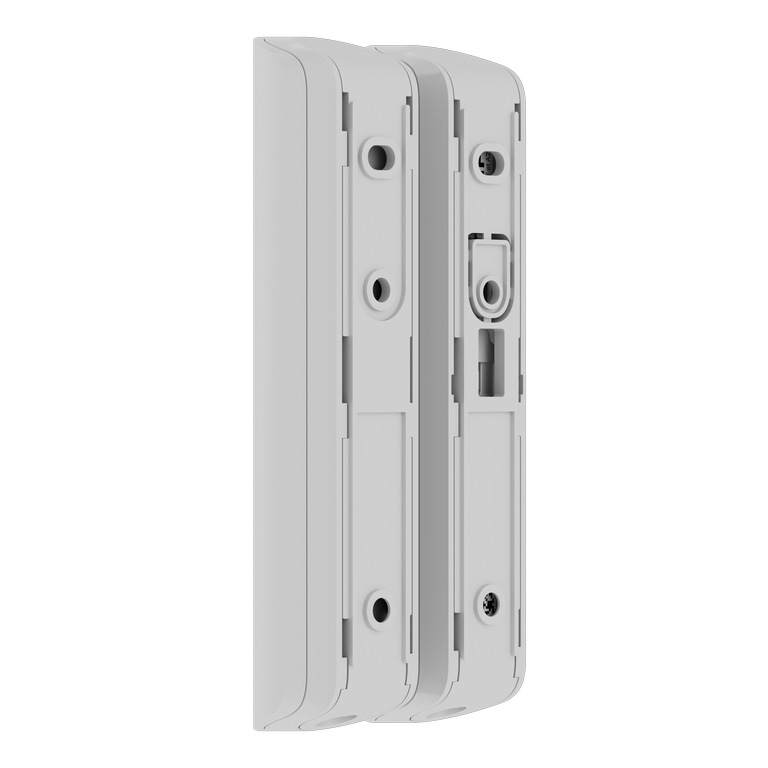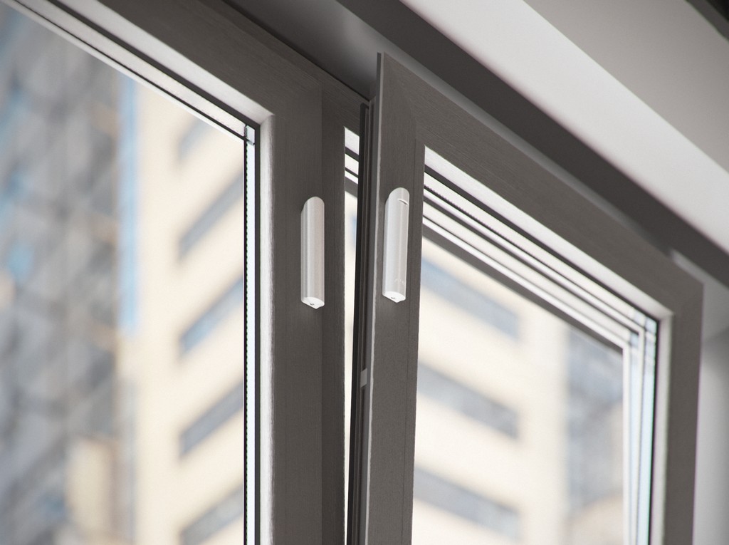 Bezdrátový magnetický detektor otevření s čidly nárazu, náklonu a maskování. Barva bílá.
