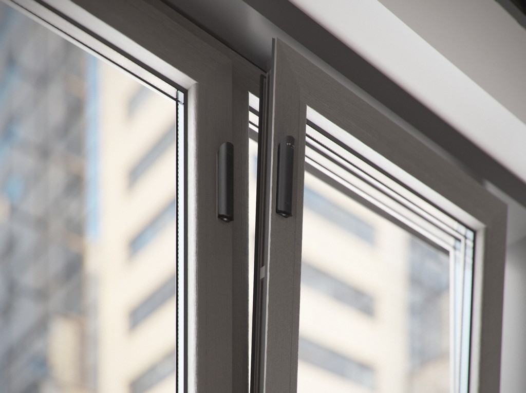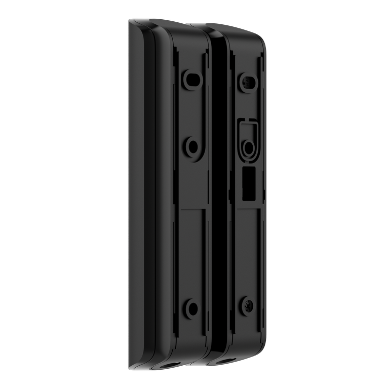 Bezdrátový magnetický detektor otevření s čidly nárazu, náklonu a maskování. Barva černá.