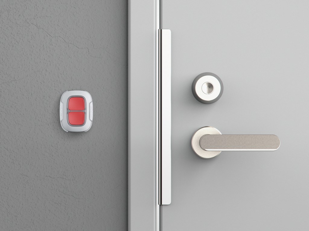 Bezdrátové nouzové tlačítko pro vysoce rizikové objekty. Barva bílá.