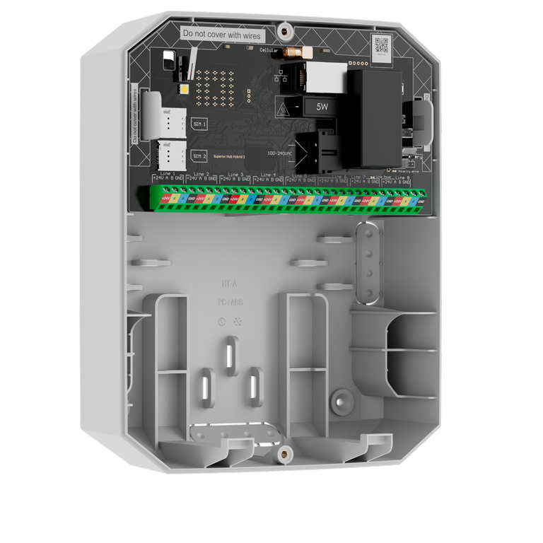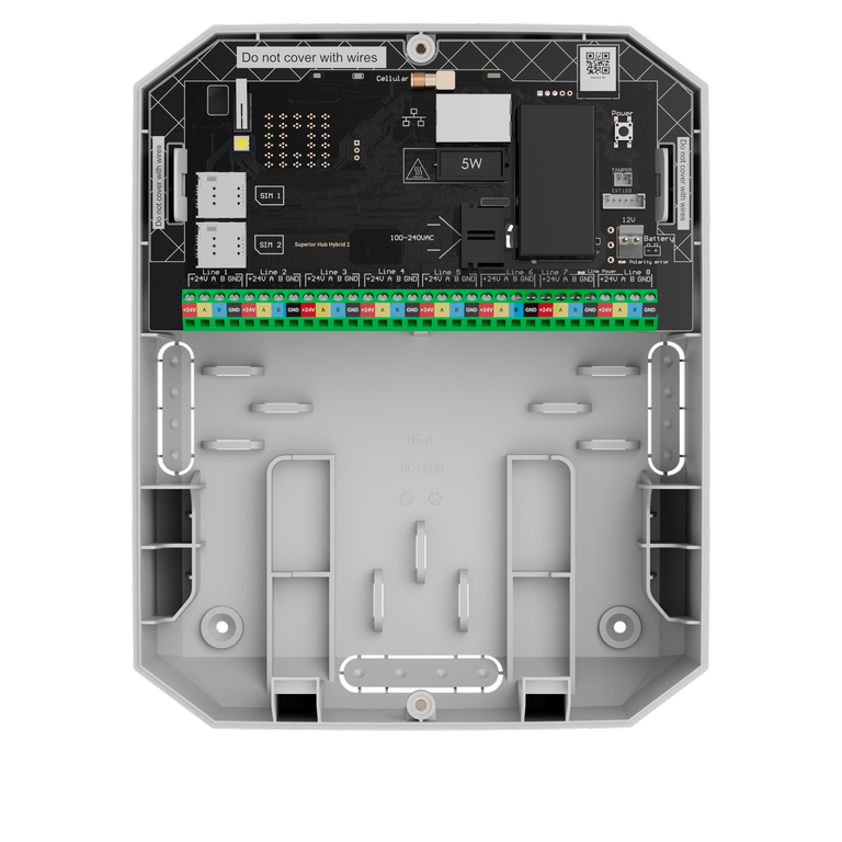 • Superior Hub Hybrid 2 se záložní baterií 7 Ah může napájet systém 15 drátových zařízení po dobu 60 hodin. Bezdrátová zařízení pracují na baterie a nevyžadují dodatečné napájení