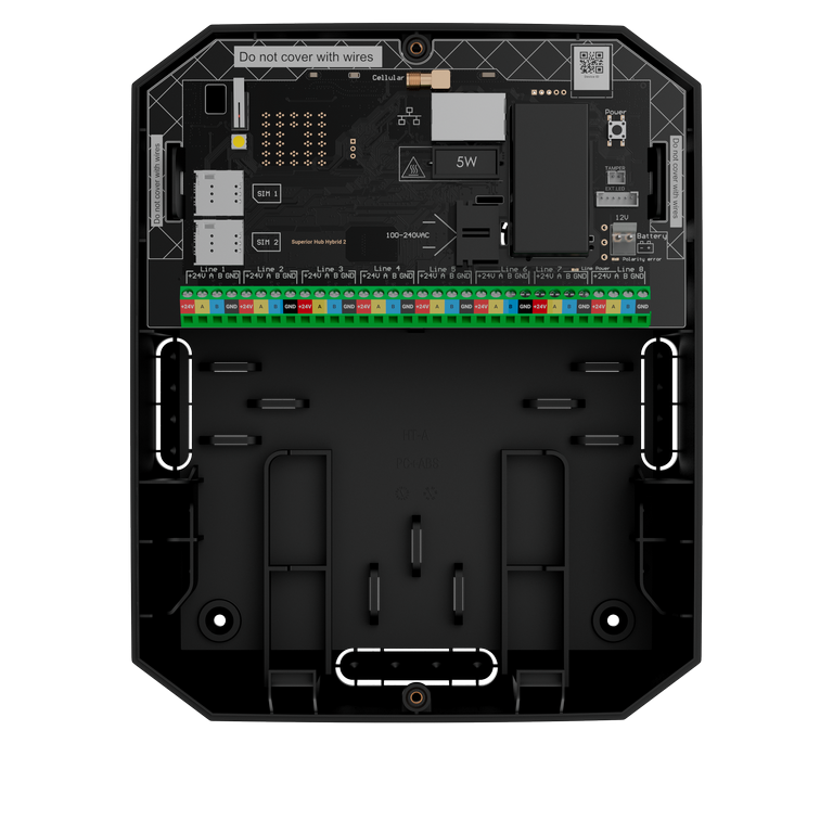 • Superior Hub Hybrid 2 se záložní baterií 7 Ah může napájet systém 15 drátových zařízení po dobu 60 hodin. Bezdrátová zařízení pracují na baterie a nevyžadují dodatečné napájení