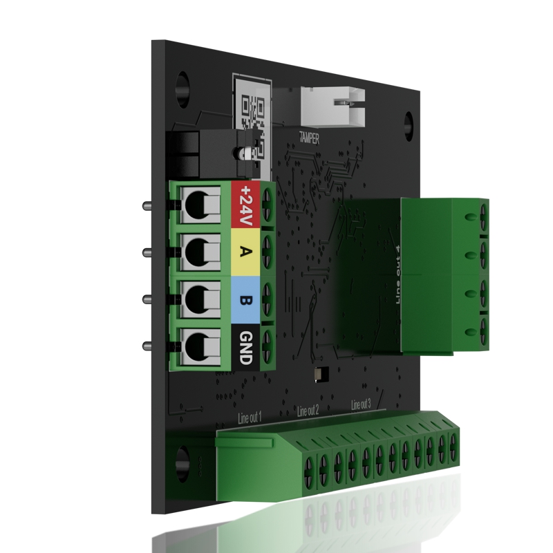 Ajax LineSplit Fibra je modul, který rozdělí jedno vedení Fibry na čtyři. Každá výstupní linka zařízení může být dlouhá až 2 000 metrů.