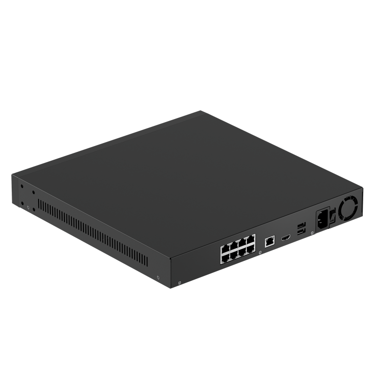 8kanálový AI videorekordér s 8 PoE+ porty a integrovanou detekcí lidí, zvířat a vozidel. Podpora 2 vyměnitelných HDD za provozu (až 24 TB každý). 4K HDMI, Gigabit Ethernet, USB 3.0 + 2× USB 2.0. Dekódování H.265/H.264, šířka pásma až 600 Mbps. JetSparrow technologie. Dva režimy nahrávání. Vzdálená i lokální správa. Podpora ONVIF/RTSP. TLS šifrování, NDAA compliant. Barva černá.