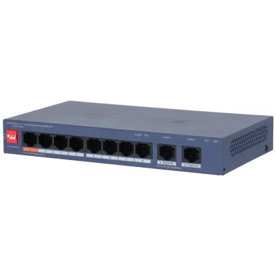 10-Portový cloud managed switch, 8x port 10/100 Mbps včetně PoE dle IEEE 802.3af/at (1x port Hi-PoE) celkový výkon 60 W, 2x port 10/100/1000 Mbps, extend mód pro spojení rychlostí 10 Mb/s do vzdálenosti 150-200 m na UTP včetně napájení PoE (dle kvality použitého vedení), automatická detekce 10/100 Mbps a zkřížení kabelů.