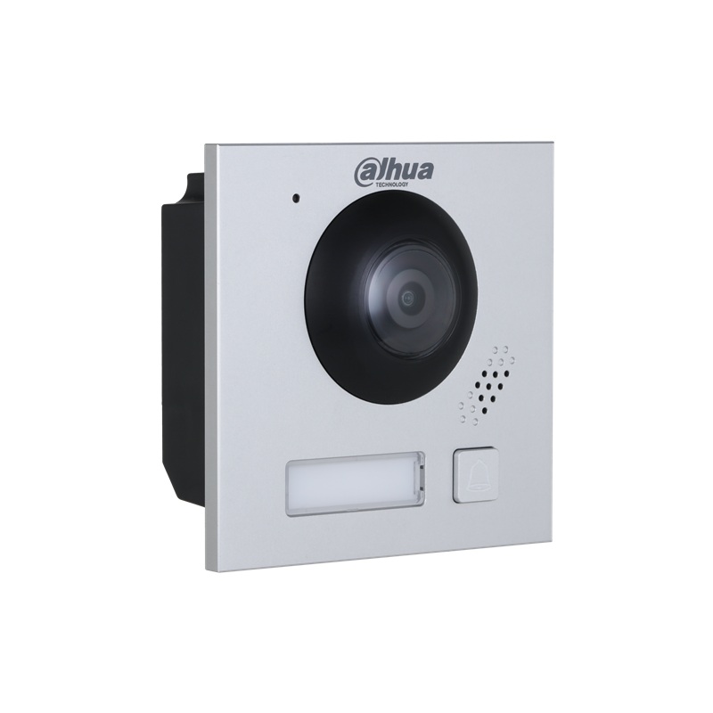 IP Dahua dveřní kamerová jednotka, šedá, základní video modul s elektronikou s 1 mechanickým tlačítkem s jmenovkou, 2 Mpx barevná kamera, 168° úhel záběru, WDR, IR přísvit, H.264 a H.265 komprese, TCP/IP komunikace, nastavování přes webové rozhraní, funkce zanechání odkazu uživateli, IP 65, 1x 12 V / 600 mA NO/NC kontakt pro připojení zámku, 1x NO kontakt odchodového tlačítka, 1x RS-485 pro připojení modulu ovládání 2. dveřního zámku DEE 1010B, napájení 802.3af PoE switchem nebo napájení 48 V DC / 1000 mA (zdroj není součástí balení), montáž pod omítku do instalačního rámu, rozměry 100,0 x 100,0 x 49,4 mm, bez instalační krabice