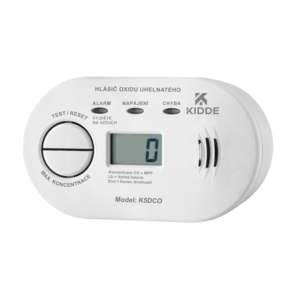 Ekonomické řešení a nízká pořizovací cena s elektrochemickým senzorem a 7-letou zárukou to je detektor oxidu uhelnatého (CO) Kidde K5DCO, který průběžně monitoruje přítomnost jedovatého oxidu uhelnatého v domácnostech nebo provozovnách, a tak poskytuje ochranu před jeho smrtelnými účinky. Kromě trojice kontrolních LED indikátorů disponuje také LCD displejem, na kterém průběžně zobrazuje naměřené hodnoty CO a další stavové informace. Hlásič lze pevně instalovat na stěnu nebo pro lepší pohodlí jednoduše volně položit na stůl, regál nebo jiný vodorovný povrch. Je ideálním bezpečnostním prvkem a spolehlivou ochranou před tímto tichým zabijákem nejen pro domácnosti, ale i v pronajatých ubytovacích prostorách nebo na dovolených.