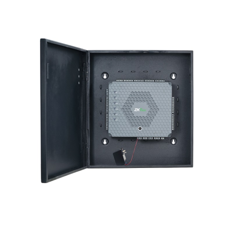 Sada přístupový kontrolér a plechový box s indikátory stavu, provedení plošný spoj v plastovém krytí, připojení 4x RFID čteček (Wiegand) nebo 8x RFID čteček (RS-485 / OSDP), možnost připojení biometrických čteček řady E FR1500A (RS-485), ovládání 4 dveří obousměrně, kapacita 5 000 uživatelů, 10 000 událostí, komunikace s PC přes TCP/IP nebo RS-485, LED signalizace stavů, 4x NO/NC relé zámku (5 A / 30 V DC), 4x vstup dveřního kontaktu, 4x vstup odchodového tlačítka, 1x relé univerzální AUX výstup (2 A / 30 V DC), 1x relé univerzální AUX vstup, USB slot pro export událostí, napájení 9,6–14,4 V DC nebo PoE 802.3af, odběr max. 3 A / 12 V DC, rozměry 160 x 140 x 30 mm, interiérové použití, umístění v chráněné zóně, podpora globálního Anti-passback a linkování mezi kontroléry, sada obsahuje zdroj 12 V DC / 3 A, uzamykatelný box, rozměry boxu 330 x 365 x 75 mm, podle počtu ovládaných dveří a připojených modulů potřebná licence pro webserver Atlas