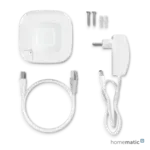Sada německého výrobce e-Q3 systému Homematic IP - 1x centrální jednotka HmIP-HAP, 1x termostatická hlavice (HmIP-eTRV-B), 1x okenní/dveřní senzor (HmIP-SWDO-2).