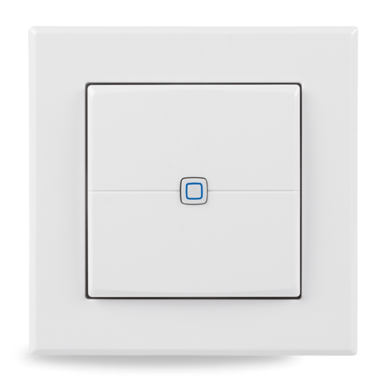 Programovatelný nástěnný drátový akční člen dálkového ovládání určený pro zápustnou montáž. Pracuje jako kolébkové dvoupolohové tlačítko pro manuální ovládání zařízení nebo vzdálené řízení osvětlení, stínění, zabezpečení a dalších funkcí systému automatizace a řízení budov Homematic IP, kterými lze jednoduše nahradit i konvenční vypínače ve stávající instalaci.
