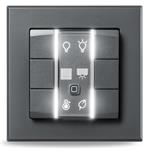 Šest intuitivních tlačítek umožňují pohodlné ovládání zařízení nebo systémových funkcí v systému automatizace a řízení budov. Například umožňují zapínat a vypínat světelné zdroje, aktivovat a deaktivovat ekologický režim nebo zvedat a spouštět rolety.