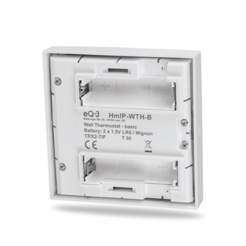 Bezdrátový Nástěnný termostat Basic (HmIP-WTH-B-2) z řady Homematic IP umožňuje časově řízenou regulaci teploty v místnosti ve spojení s termostatickými hlavicemi (HmIP-eTRV) z řady Homematic IP nebo Akčními členy podlahového vytápění (HmIP-FAL).