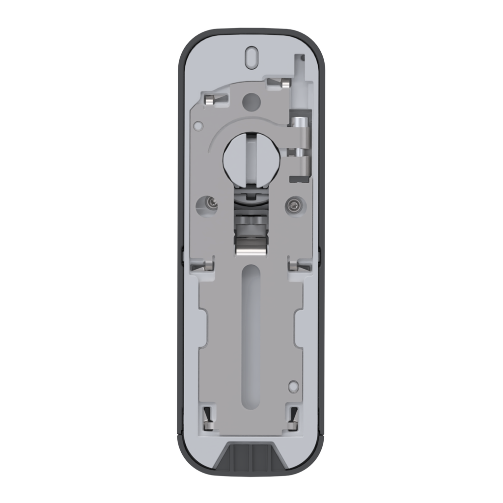 - Klasický klíč zvenku – v případě vybití baterií nebo výpadku systému lze dveře stále otevřít klasicky