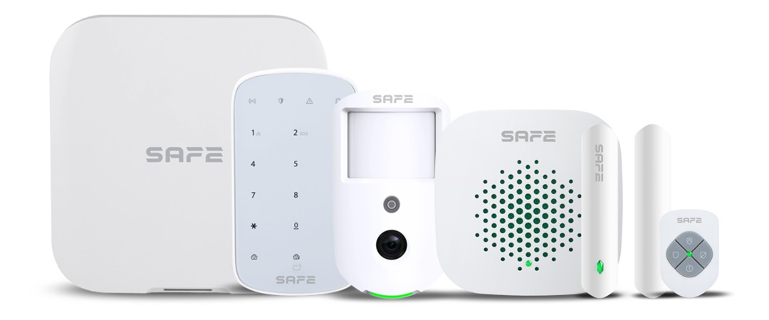 SAFE Starter Kit Cam Plus - Kompletní bezdrátová sada zabezpečení s foto verifikací. Obsahuje Hub 2 Plus LTE, Motion Cam (PhOD), Door Guard Plus, Indoor Siren, Keypad Plus a Key Control. Okamžité notifikace, šifrovaná komunikace (AES128), LTE záloha (2× SIM), dlouhá výdrž na baterii, rychlá instalace přes QR. Barva bílá.