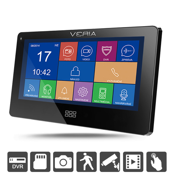 VERIA 7077 nabízí svému uživateli komfortní kombinaci videotelefonu a jednoduchého DVR monitorovacího systému s možností zachycení snímku nebo video záznamu využívající například tak sofistikované funkce, jako je detekce pohybu nebo podpora připojení externích CCTV kamer pro sledování okolí.