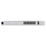 Jednotka USw-16-POE je plně manažovatelný 16-ti portový switch. Univerzální USW 16 PoE poskytuje gigabitové PoE připojení k ethernetovým zařízením a zároveň poskytuje možnost uplinku s gigabitovým vláknem, vhodné pro podnikovou síť.