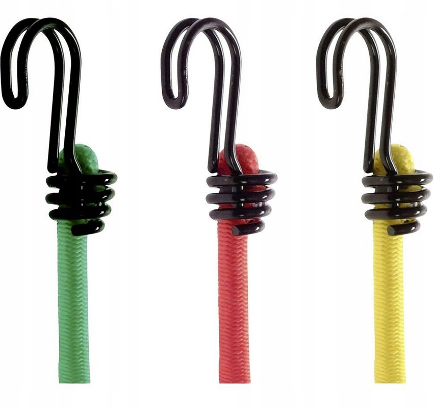 Set obsahuje upínací gumy v délce 2x 600 mm, 2x 800 mm, 2x 1 000 mm, všechny o průměru 8 mm.
